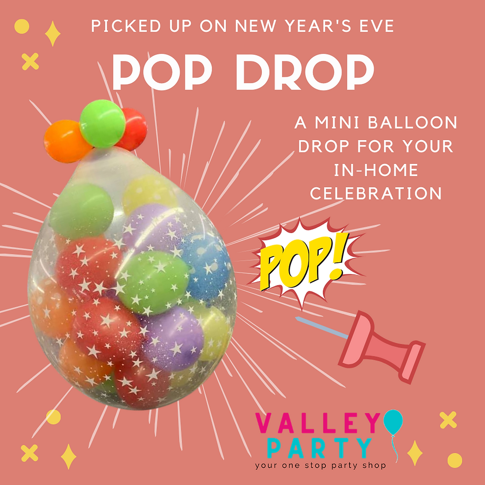 We have the FUNNEST and most awesome way to ring in the New year with a BANG! Literally a BANG! Check out our fun Pop Drops that are perfect for intimate in-home parties. This Mini-Balloon-Drop is fun for both kids and adults. Consider purchasing one from your favorite Balloon Professional in time for New Years Eve.